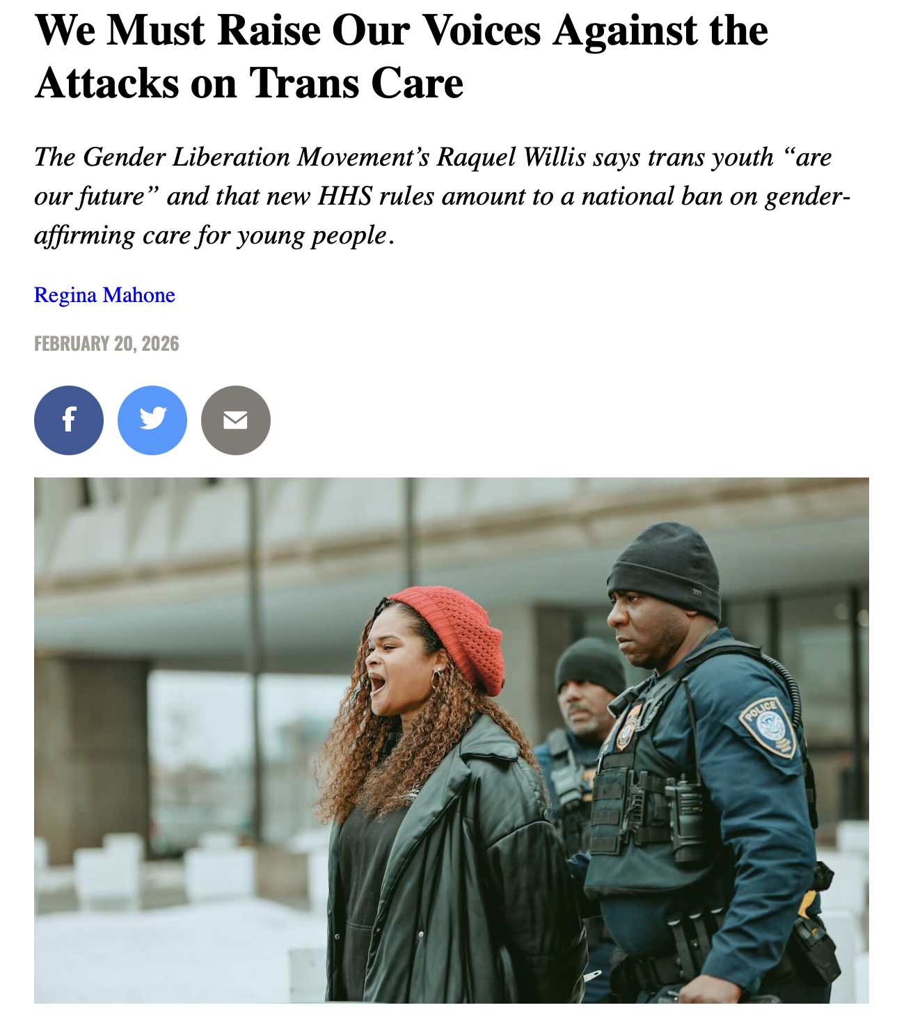 We Must Raise Our Voices Against the Attacks on Trans Care, The Nation., February 2026